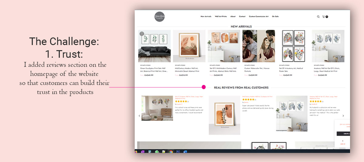 Users were having lack of trust in the website, the artwork process, shipping and return policy.
