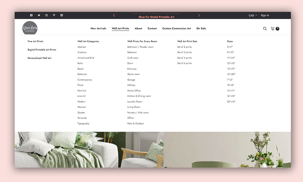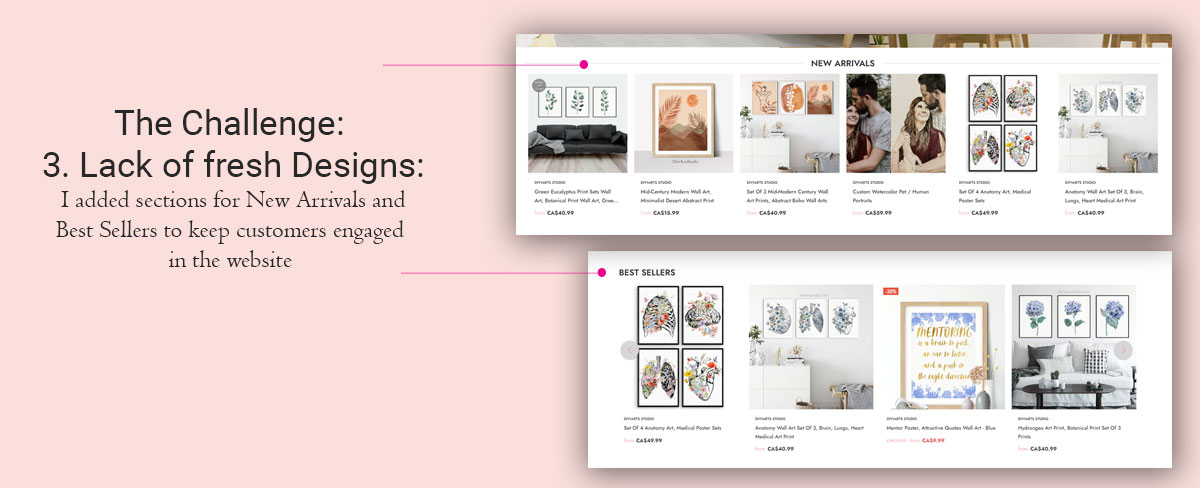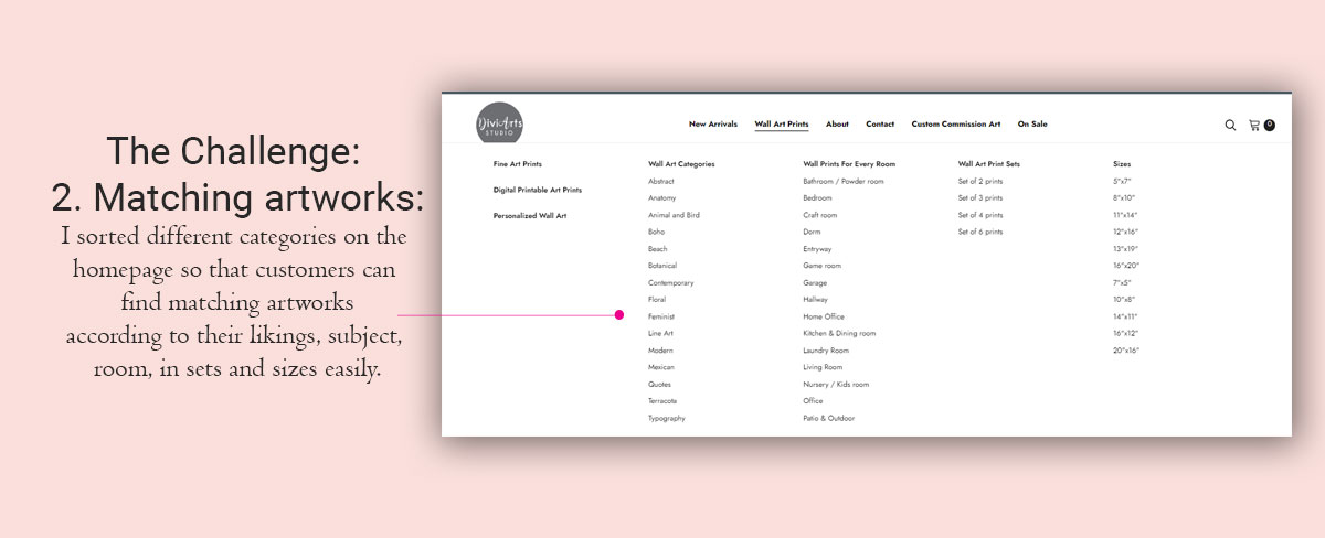 Users wanted to see a variety of sizes offered in the artworks and different categories of styles.