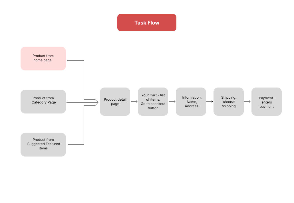 This stage of the Design Thinking process focuses on taking a creative approach and generating ideas. With the findings that I synthesized from the previous steps and the user journey map that I made earlier; I was able to think outside the box. I created a number of deliverables that could help me identify and visualize a solution. I worked on thinking that how my site design should look like and How can I give my users a seamless shopping experience.